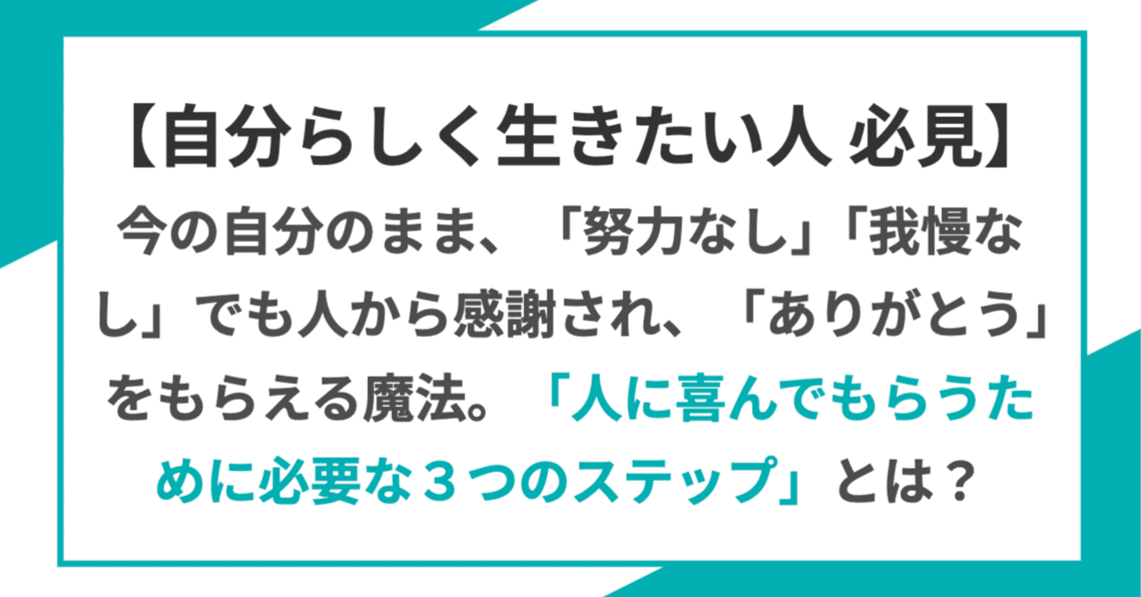 【自分らしく生きたい人 必見】今の自分のまま、「努力なし」「我慢なし」でも人から感謝され、「ありがとう」をもらえる魔法。「人に喜んでもらうために必要な3つのステップ」とは?|吉沢@Xでは言えない話。note版