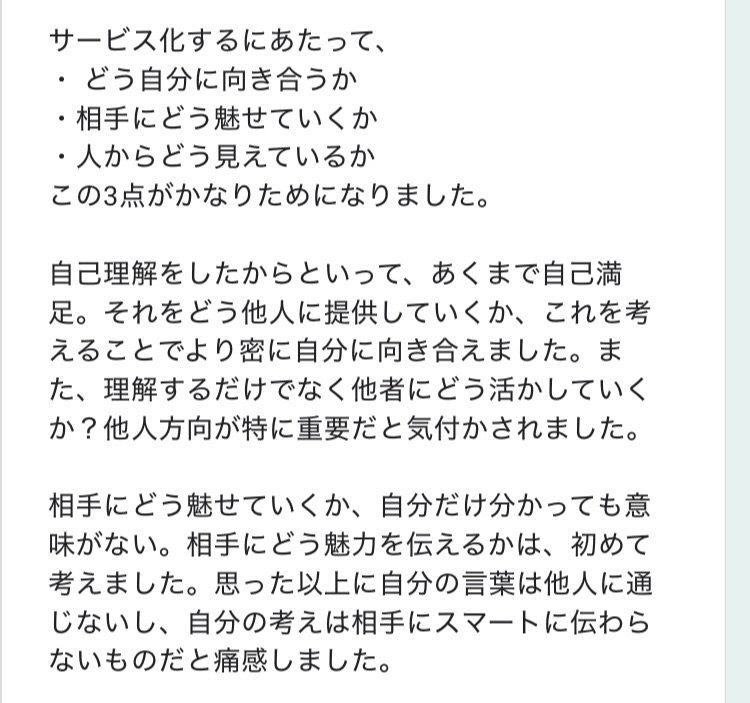 - 自信を持って自分のサービスを勧められるから、売ることやお金をもらうことに罪悪感がなくなった!